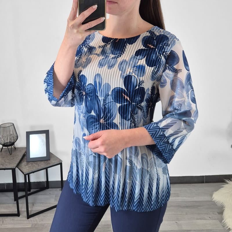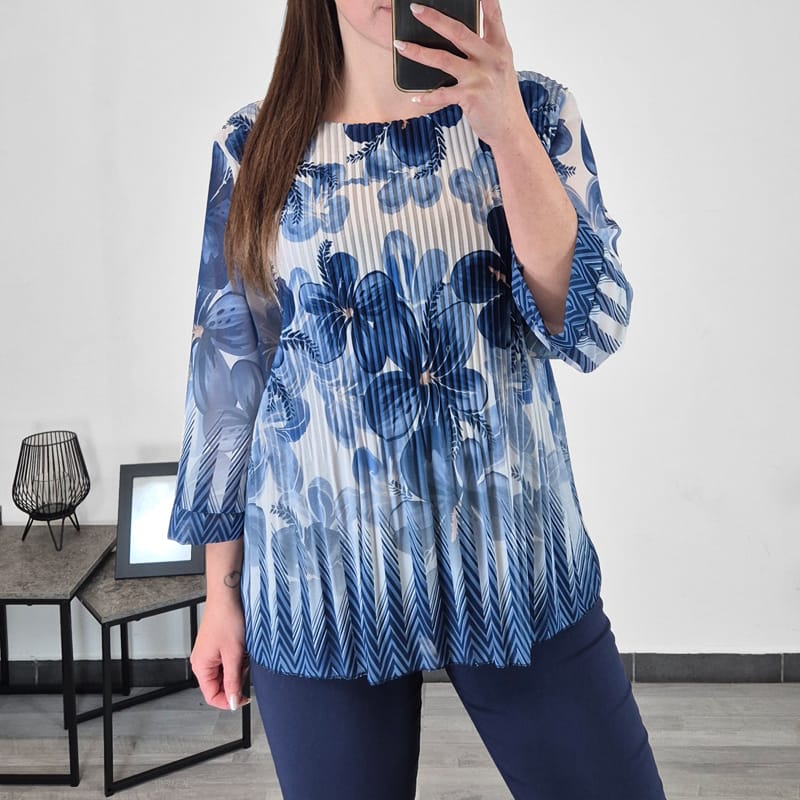 ELEGANTA PLISE BLUZA Z VZORCEM