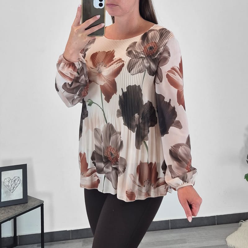 ELEGANTA PLISE BLUZA Z VZORCEM
