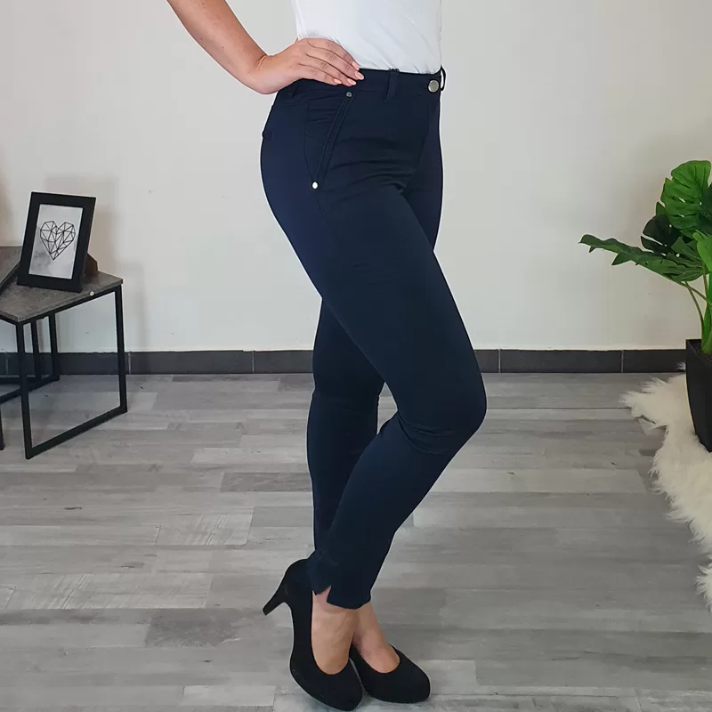V kolikor potrebujete udobne in kvalitetne hlače, so modne hlače Denisa najboljša izbira. So zelo elastične in udobne, pas je srednje visok. Hlačnice so ozke in dolge, na koncu jih krasi manjši razporek. Hlače imajo na sprednji in zadnji strani dva dekorativna žepa, ki sta le nakazana. Hlače so primerne za vse priložnosti in v njih se boste počutile izjemno.