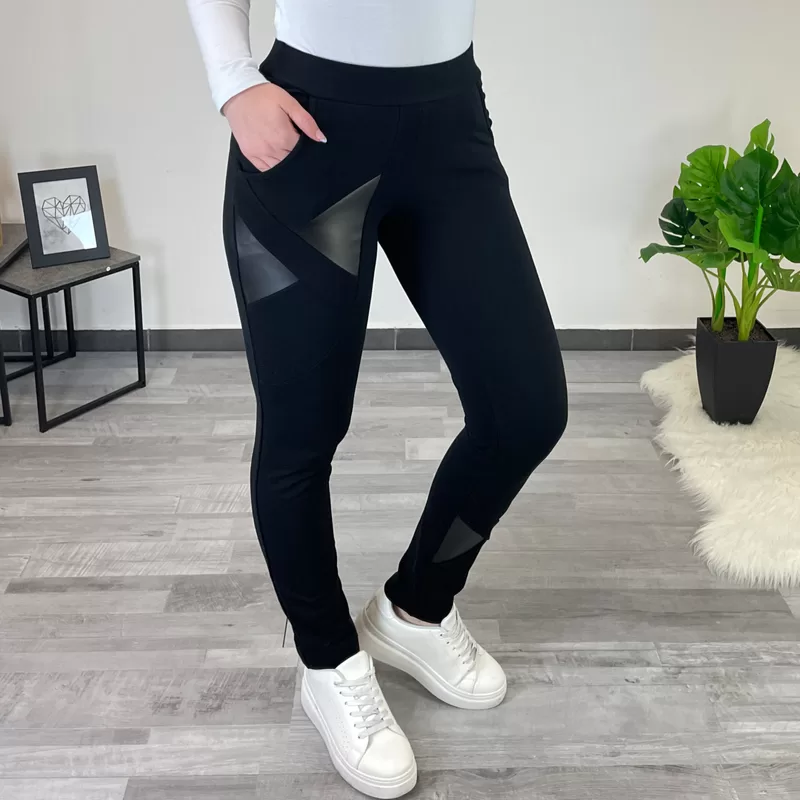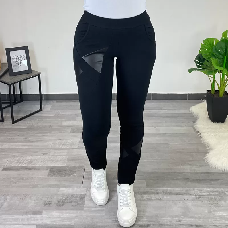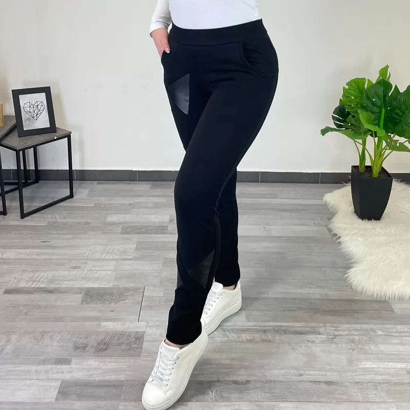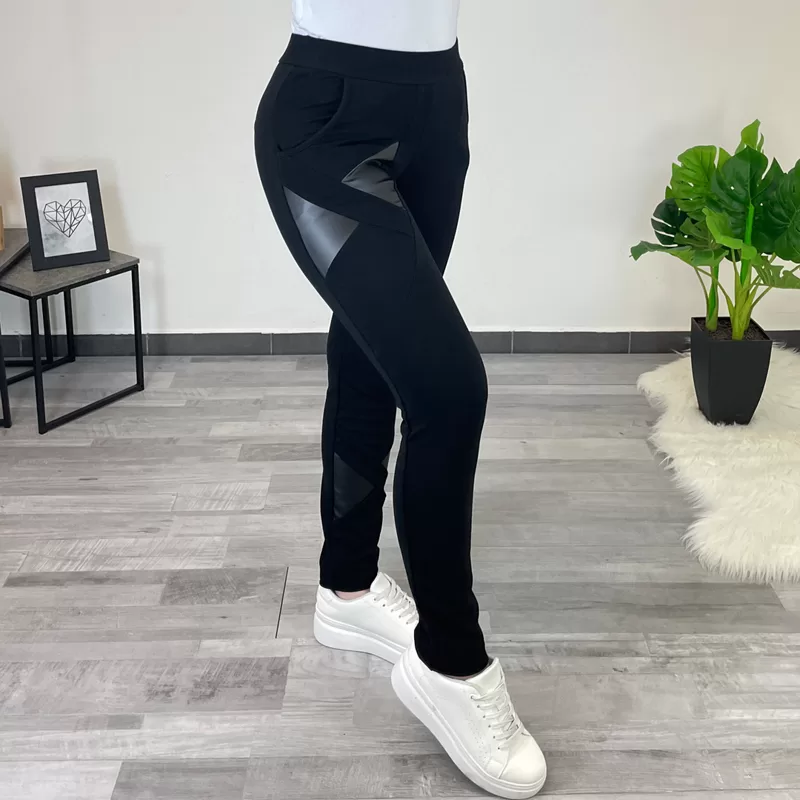 Športne hlače Ives v črni barvi. Hlače imajo žepe in so brez patenta. Dodani so vzorčki imitacije usnja. Priporočamo nakup večje številke.
