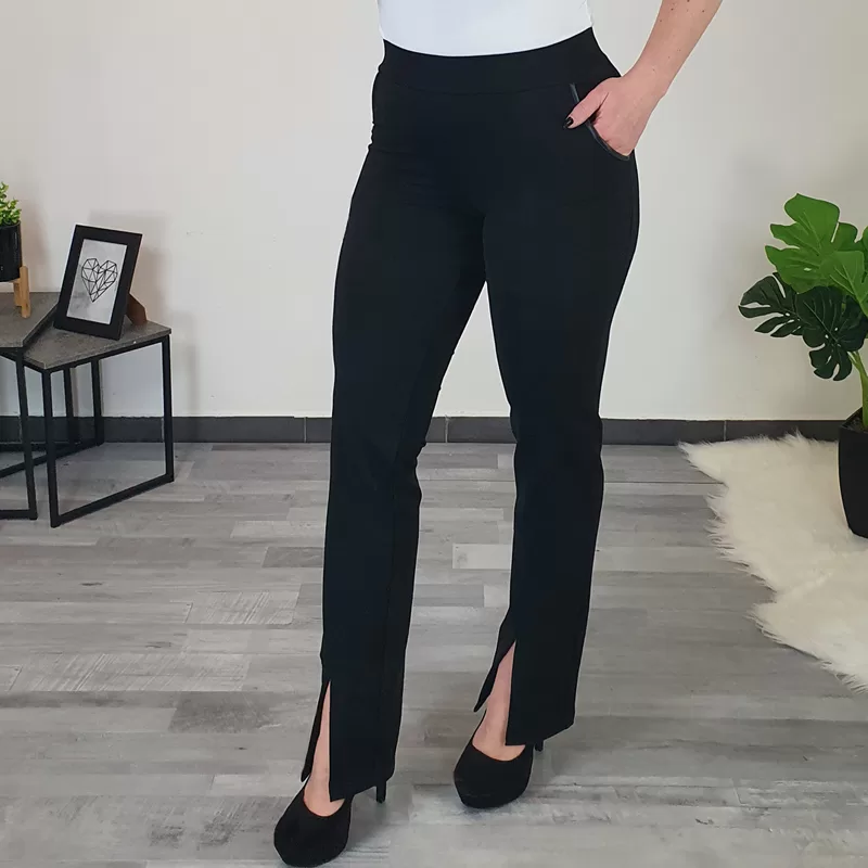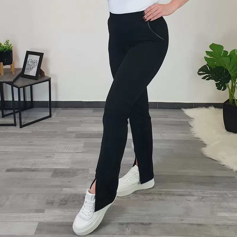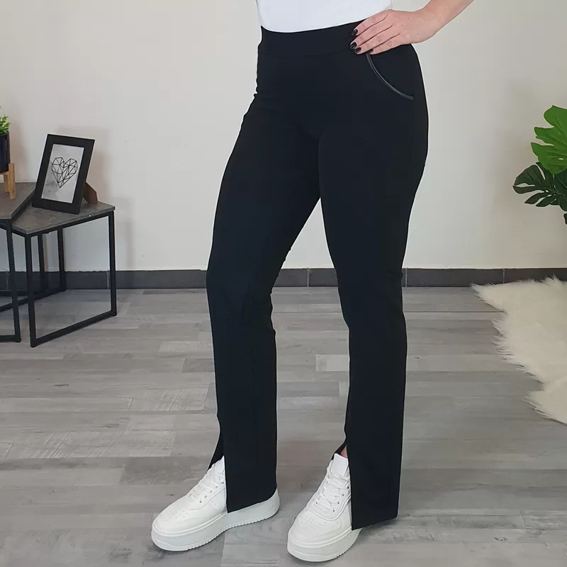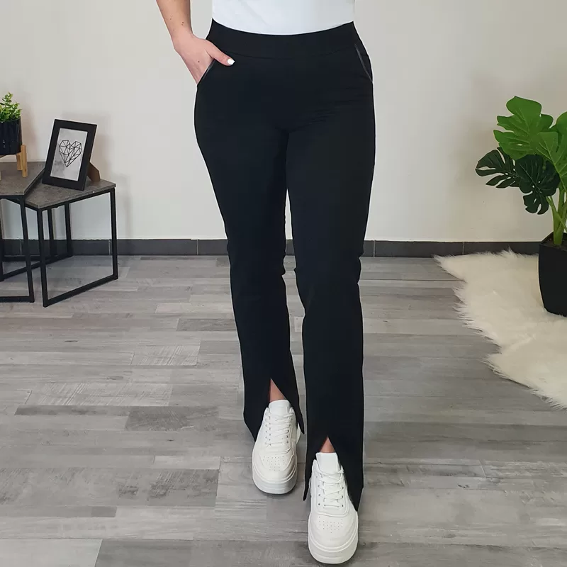 HLAČE KLARA Z RAZPORKOM ČRNE