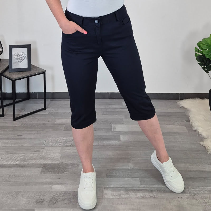 ŽENSKE KAPRI HLAČE V TEMNO MODRI BARVI