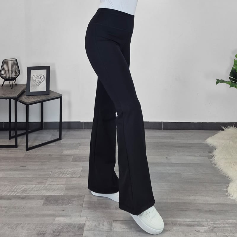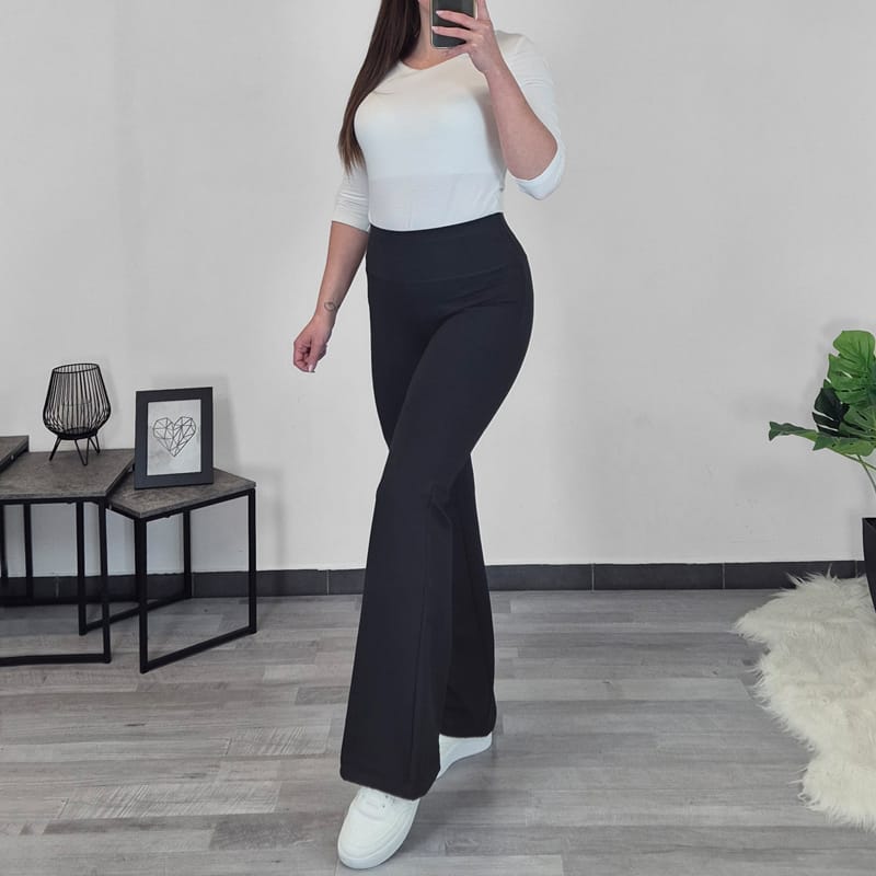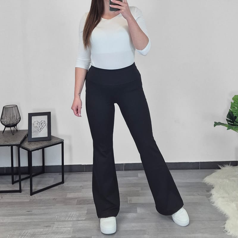 Ženske bombažne hlače na zvon. Hlače imajo visok pas, v pasu imajo elastiko. Hlačnice so v predelu stegen oprijete, na spodnjem delu pa široke. Izdelane so iz kvalitetnega elastičnega materiala in so udobne za nošenje. Velikosti od 36 do 50.