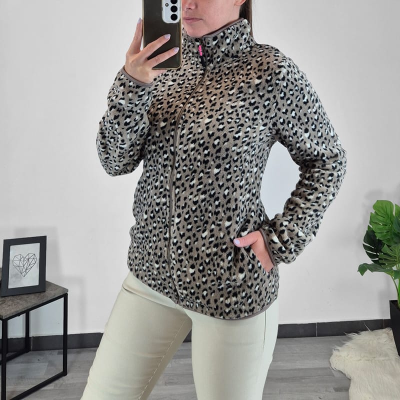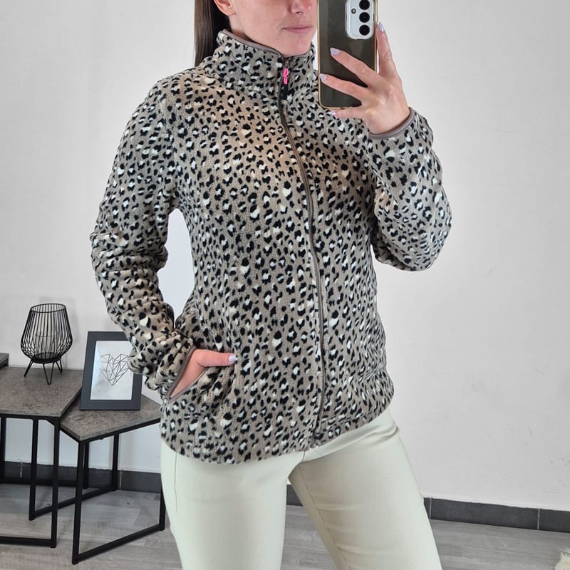 Ženska jopa oziroma velur v rjavi barvi z vzorcem. Jopa ima visok ovratnik, po celotni dolžini se zapenja z zadrgo, ob straneh ima dva žepa. Jopa je kosmata, zelo topla in mehka na otip. Jopa je primerna tako za prosti čas kot tudi za različne zimske aktivnosti.