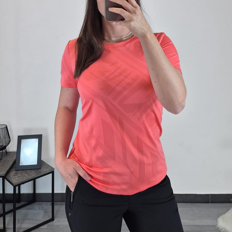 Ženska funkcijska majica Karisto v roza barvi. Narejena je iz 4-smerno raztegljivega materiala, ki se razteza v vse smeri in zagotavlja maksimalno svobodo gibanja. Posebna pozornost je bila namenjena dizajnu tega A.W.S EXTREME artikla, kar pomeni, da je majica primerna tako za ekstremne, kot tudi za bolj sproščene športne aktivnosti. Material se hitro suši.