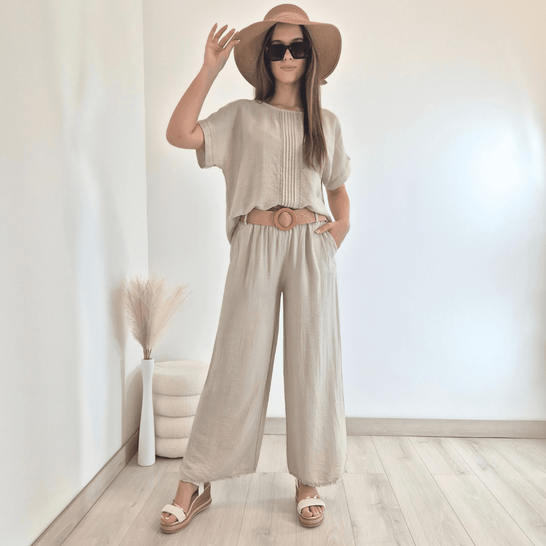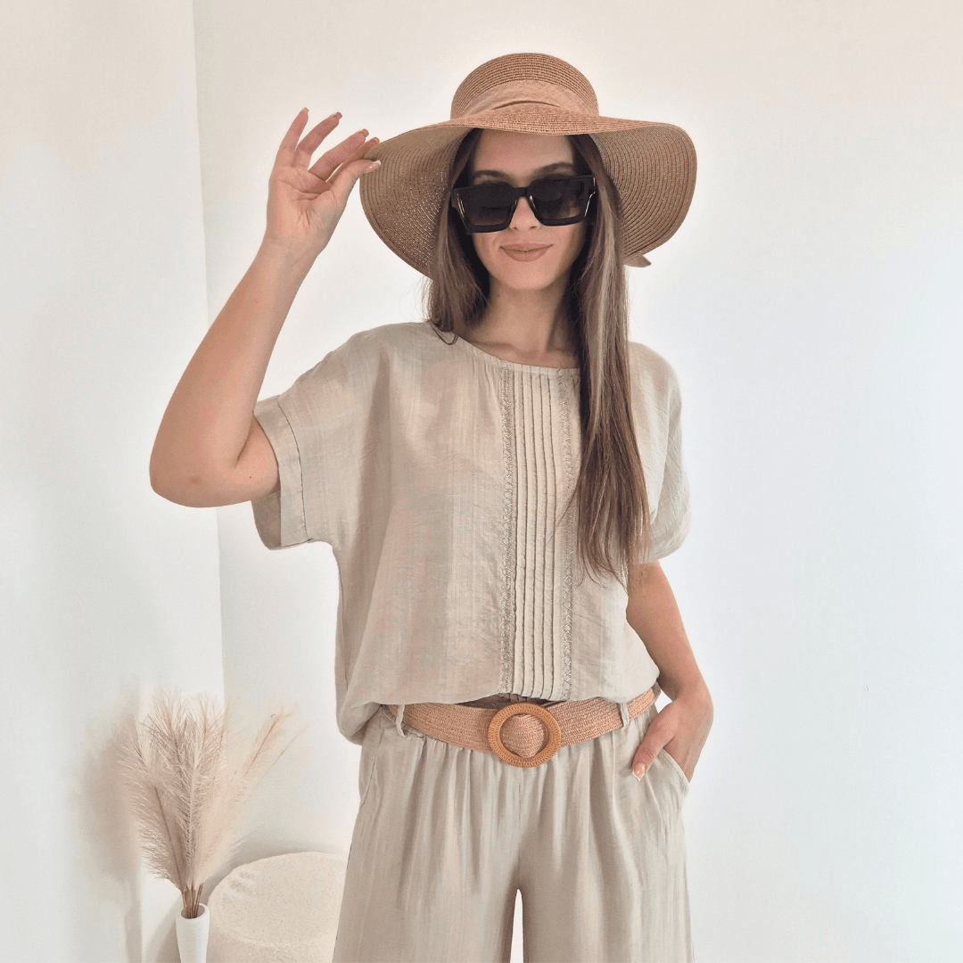 Ženska viskozna majica iz kolekcije Violeta v bež barvi. Majica ima kratka rokava, na zadnji strani je malenkost podaljšana, spredaj jo krasijo srebrne niti. Izdelana je iz viskoze, je lahka in zračna. Velikost je univerzalna, primerna za M do 3XL. Vse kose iz kolekcije Violeta lahko med sabo lepo kombinirate.