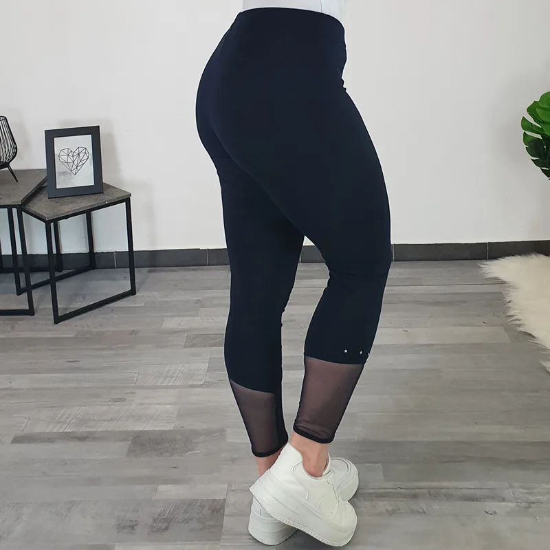 Modne pajkice Elizabeta v temno modri barvi. Pajkice imajo višji pas, hlačnice so oprijete in dolžine 7/8. Na koncu jih krasi moder til in srebrni biserčki, kar jim daje eleganten izgled. Izdelane so iz kvalitetnega bombaža in pri nošenju ohranjajo svojo obliko.