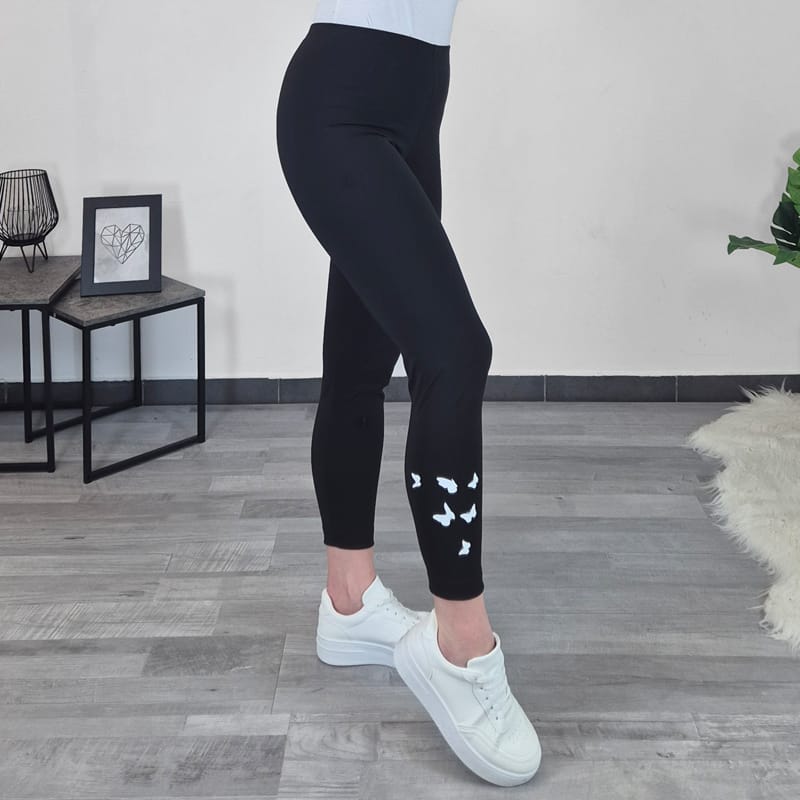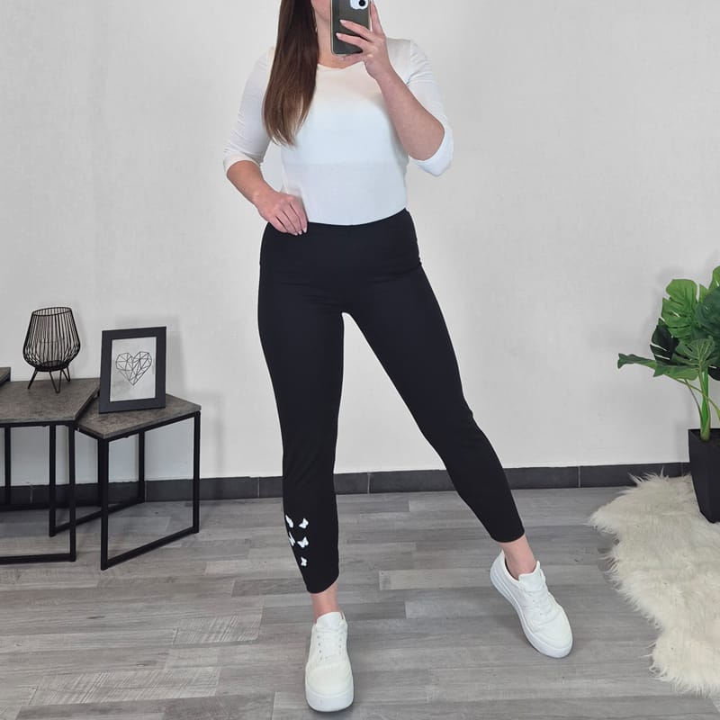 Modne pajkice Ida v črni barvi. Pajkice imajo višji pas, hlačnice so oprijete in dolžine 7/8. Na hlačnici ob strani imajo dodan tisk. Izdelane so iz kvalitetnega bombaža in pri nošenju ohranjajo svojo obliko. Na voljo od številke 36 do 50.