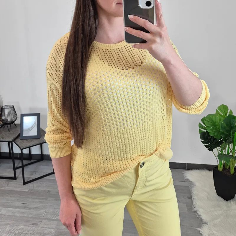 Ženski pulover blagovne znamke Kenny. S. Pulover ima 3/4 rokava, narejen je iz pletenine, zato je spodaj potrebno nositi top oziroma majico. Pulover je narejen iz kvalitetne viskoze in je nosljiv praktično skozi celo leto.