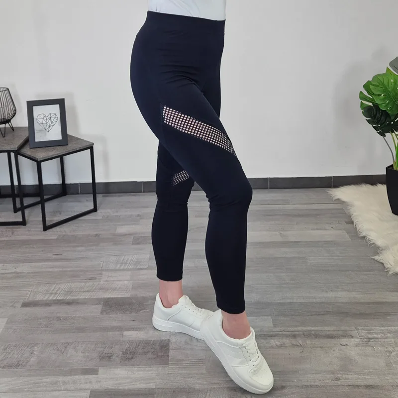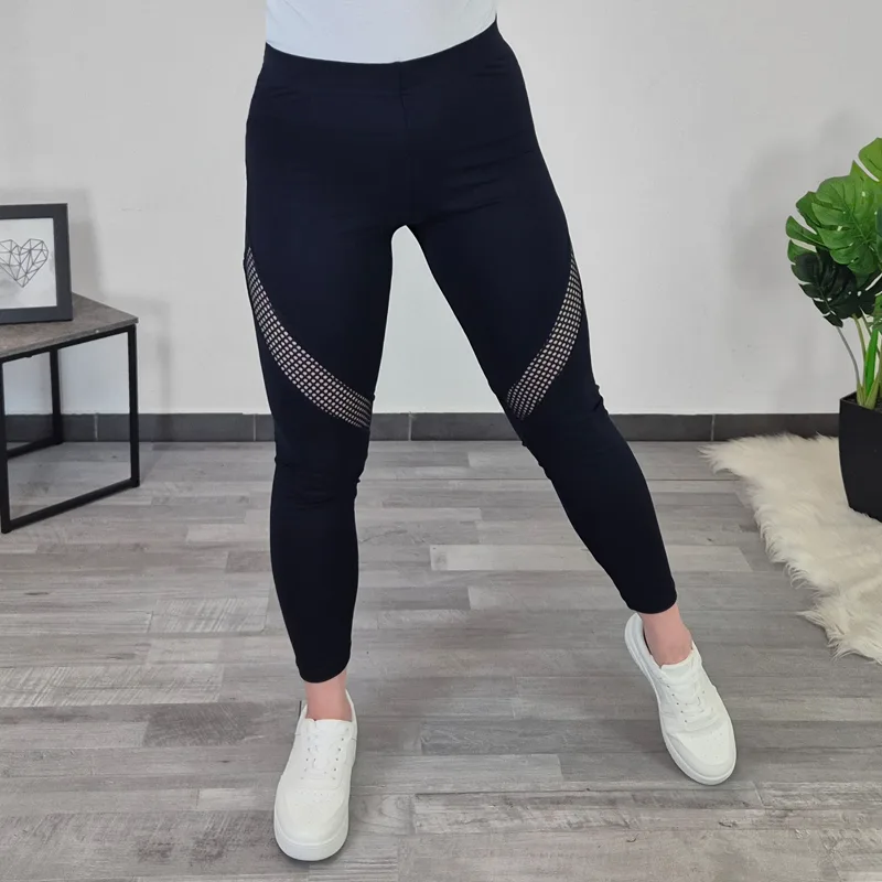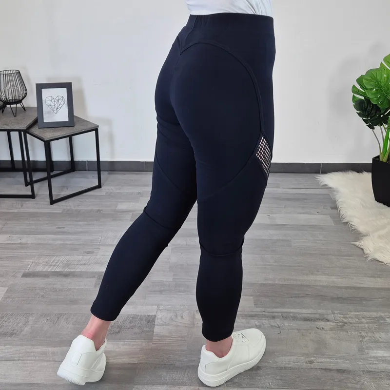 Ženske push up pajkice Doris v temno modri barvi. Zadnji del pajkic je oblikovan tako, da lepo poudari vašo postavo. Narejene so iz kvalitetnega in prožnega bombaža in pri nošenju ohranjajo svojo obliko. Pajkice imajo višji pas, hlačnice so oprijete in dolžine 7/8. Na hlačnici je dodana temno modra mrežica. Na voljo od številke 36 do 46.