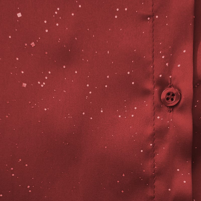 Ženska srajca v bordo barvi s srebrnimi bleščicami. Srajca ima dolga rokava, ovratnik, zapenja se z gumbi. Izdelana je iz lahkega materiala in lepo pade. Velikost je univerzalna, primerna za M-3XL.