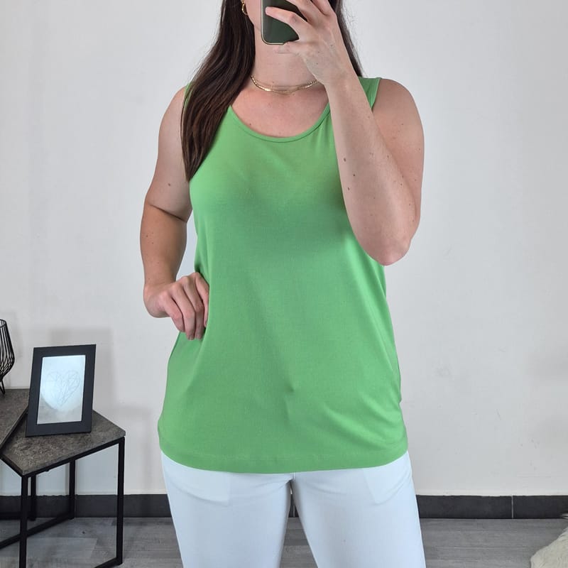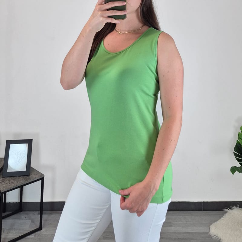 Ženska majica brez rokav v zeleni barvi. Majica je izdelana iz mešanice modala in bombaža in je prijetna za nošenje. Na voljo je od številke S do 3XL.