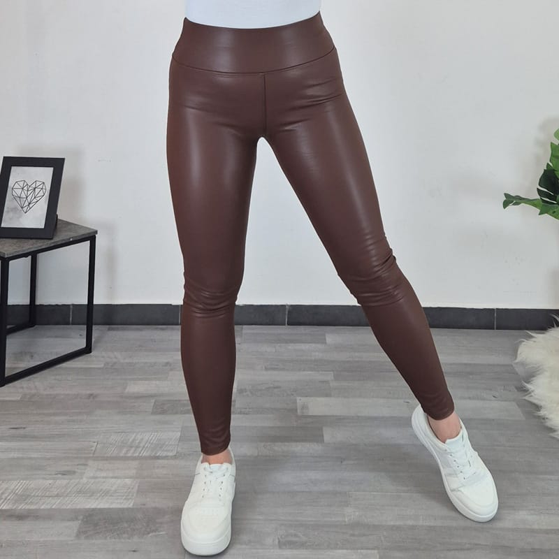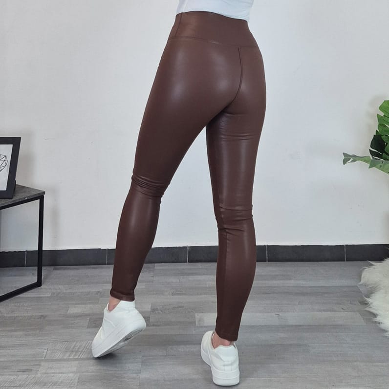 Kosmatene ženske pajkice v videzu usnja, v rjavi barvi. Pas je visok in širok in se odlično prilega telesu. Pajkice so narejene iz elastičnega materiala in so udobne.